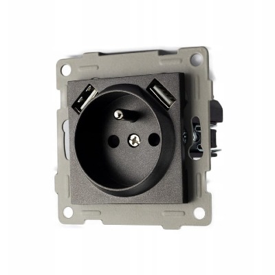 Gniazdko podtynkowe elektryczne pojedyncze z 2 portami USB czarne