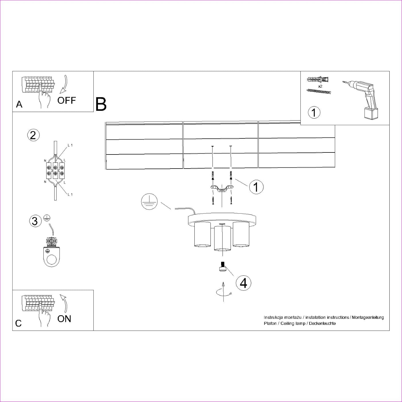 Źródło światła: GU10, 3x max 10W LED, ~230V, 50Hz, IP20, klasa ochronności I