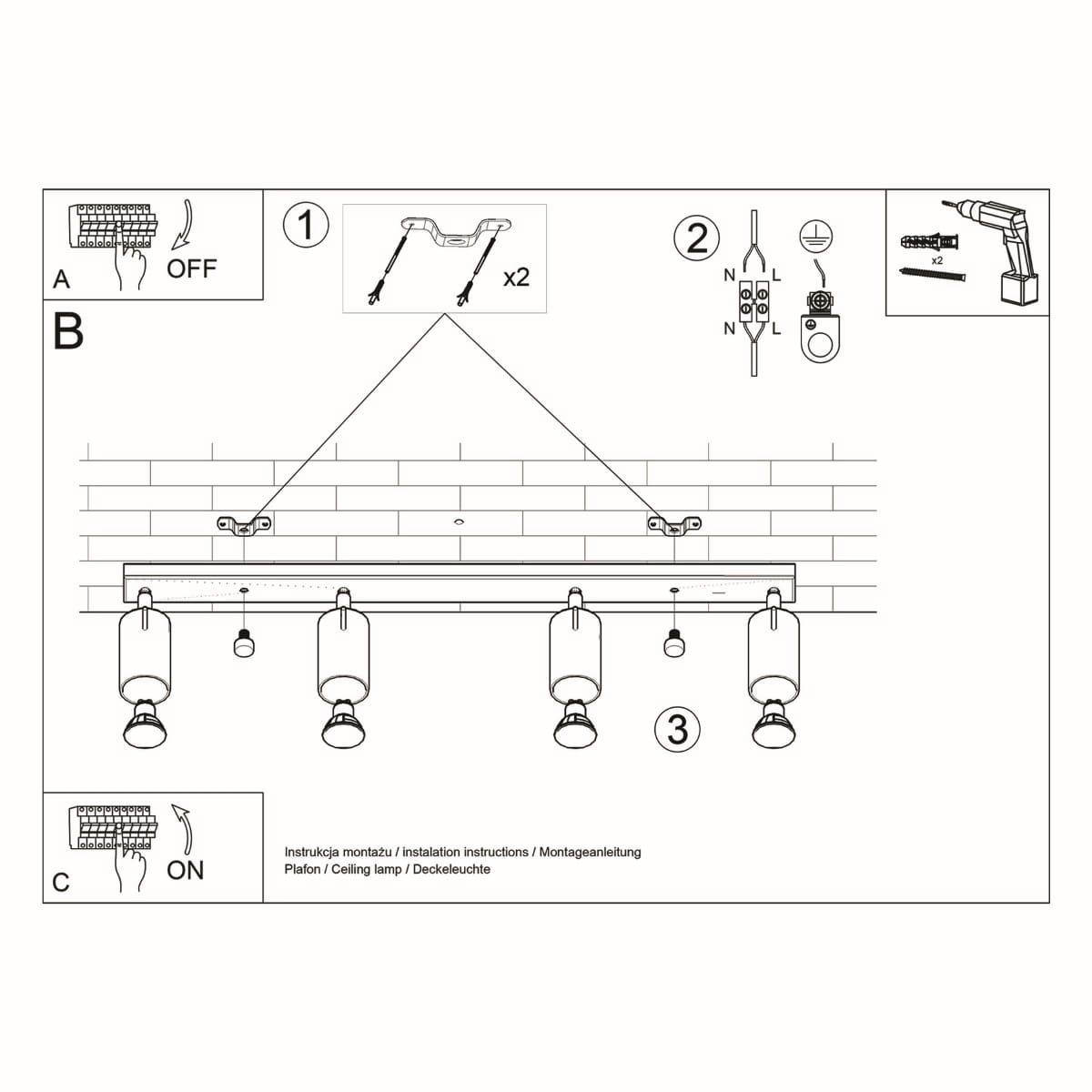 - Ilość źródeł światła: 4