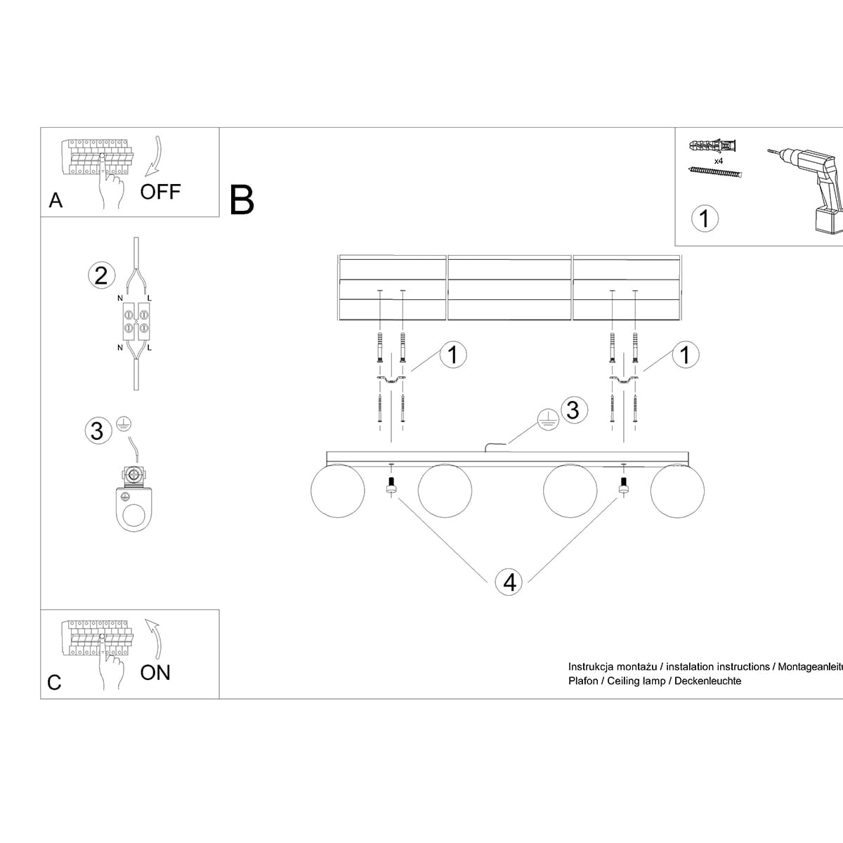 - Ilość źródeł światła: 4