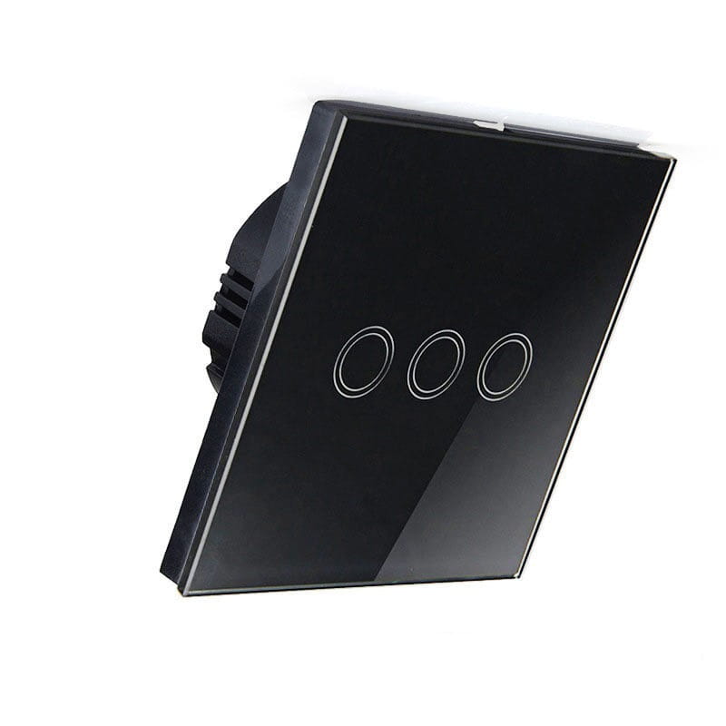 Włącznik Ścienny Dotykowy Potrójny Szklany Czarny