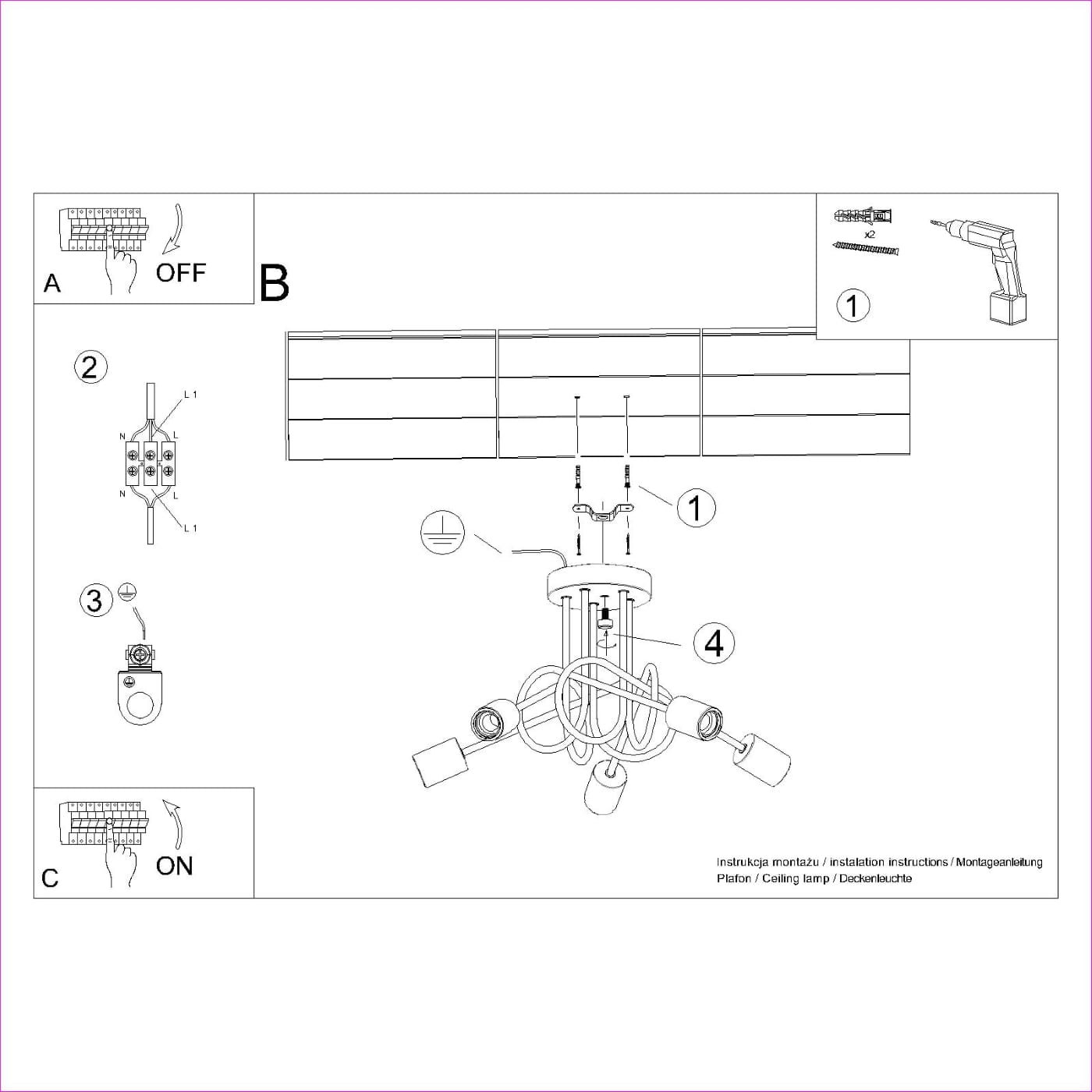 Źródło światła: E27, 5x max 15W LED, ~230V, 50Hz, IP20, klasa ochronności II