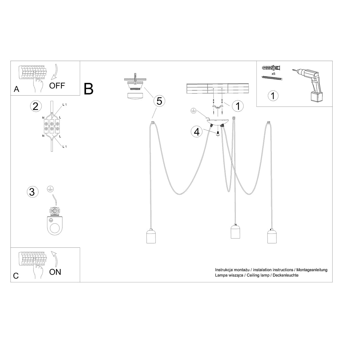 - Ilość źródeł światła: 3