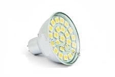 Żarówka LED z trzonkiem MR16, posiada 24 nowoczesne diody SMD5050 z 3 chipsetami led każda, cenionej firmy Epistar o wysokiej jasności i długiej żywotności. Biała zimna barwa światła z delikatnym odcieniem niebieskiego, idealnie nadaje się do pomieszczeń, gdzie pracujemy oraz oświetlenia np. eksponatów na wystawie. Obudowa z aluminium w kolorze srebrnym pasuje do praktycznie każdej oprawy "oczkowej".